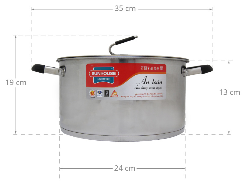Nồi có đường kính 24 cm thân nồi cao, dùng để nấu canh, kho thịt cho 3 - 4 người ăn; có thể luộc gà, vịt khoảng 1 kg
