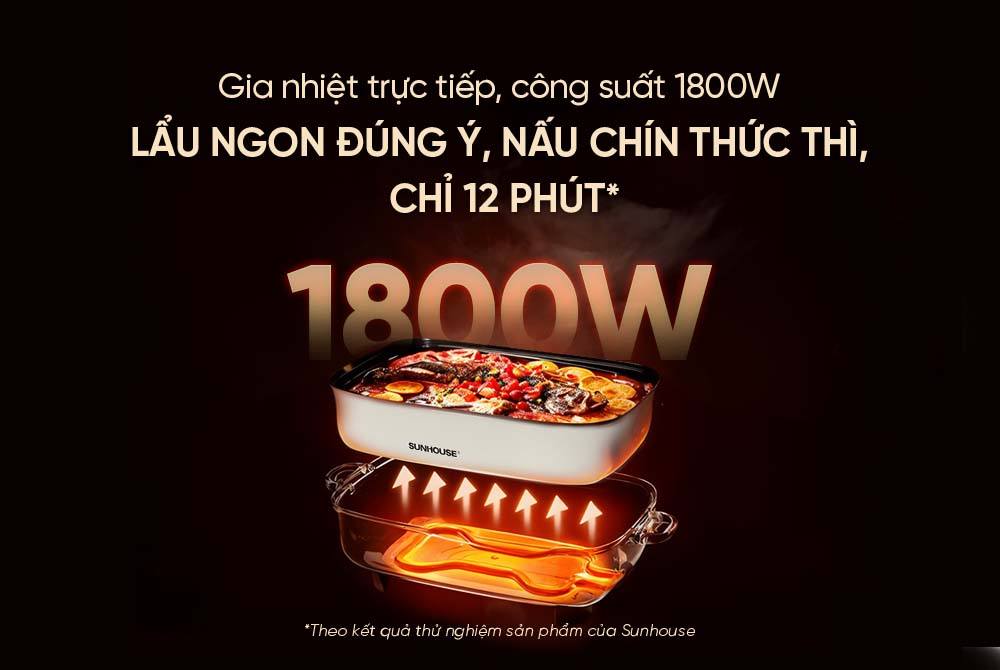 Công nghệ gia nhiệt trực tiếp giúp nồi nóng đều và đạt nhiệt độ lý tưởng chỉ trong vài phút, giúp thức ăn chín nhanh, giữ trọn hương vị tự nhiên và dinh dưỡng. Với lẩu điện Sunhouse SHD4560, bạn chỉ mất 12 phút* để thưởng thức món lẩu thơm ngon, nóng hổi.