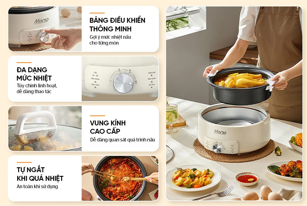 | Chức năng | Lẩu, nấu canh, chiên, xào… |