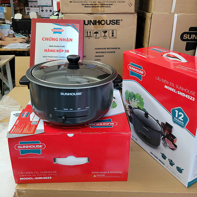 Nồi lầu điện 3.5 lít Sunhouse SHD4523 chống dính tốt, đa năng, sử dụng tiện lợi hứa hẹn là một sản phẩm không thể thiếu ở mỗi gia đình.