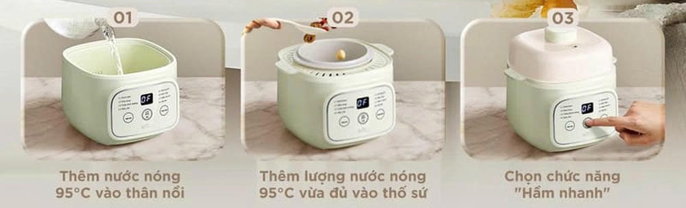 Nồi sử dụng nước nóng 95°C giúp rút ngắn thời gian nấu xuống chỉ còn một nửa. Món ăn vẫn thơm ngon, mềm đúng chuẩn mà không tốn nhiều giờ chờ đợi.