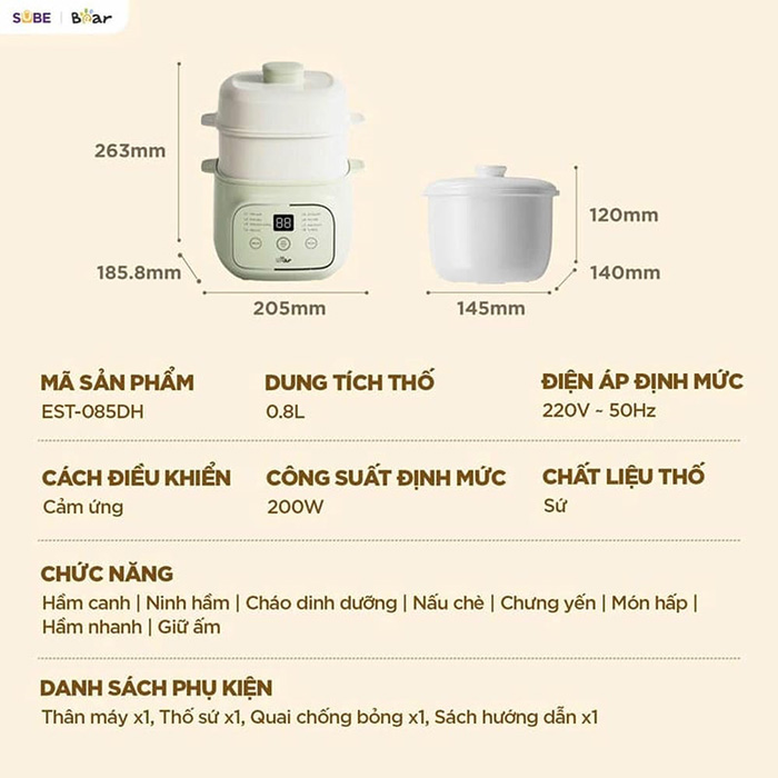 Thông số kỹ thuật Nồi nấu chậm Bear EST-085DH