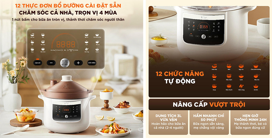 Sẽ tiện lợi cho những bạn bận rộn khi đã có tính năng hẹn giờ nấu lên đến 24 tiếng, bạn có thể thiết lập trước thời gian và giao việc còn lại cho chiếc nồi đa năng này thôi.