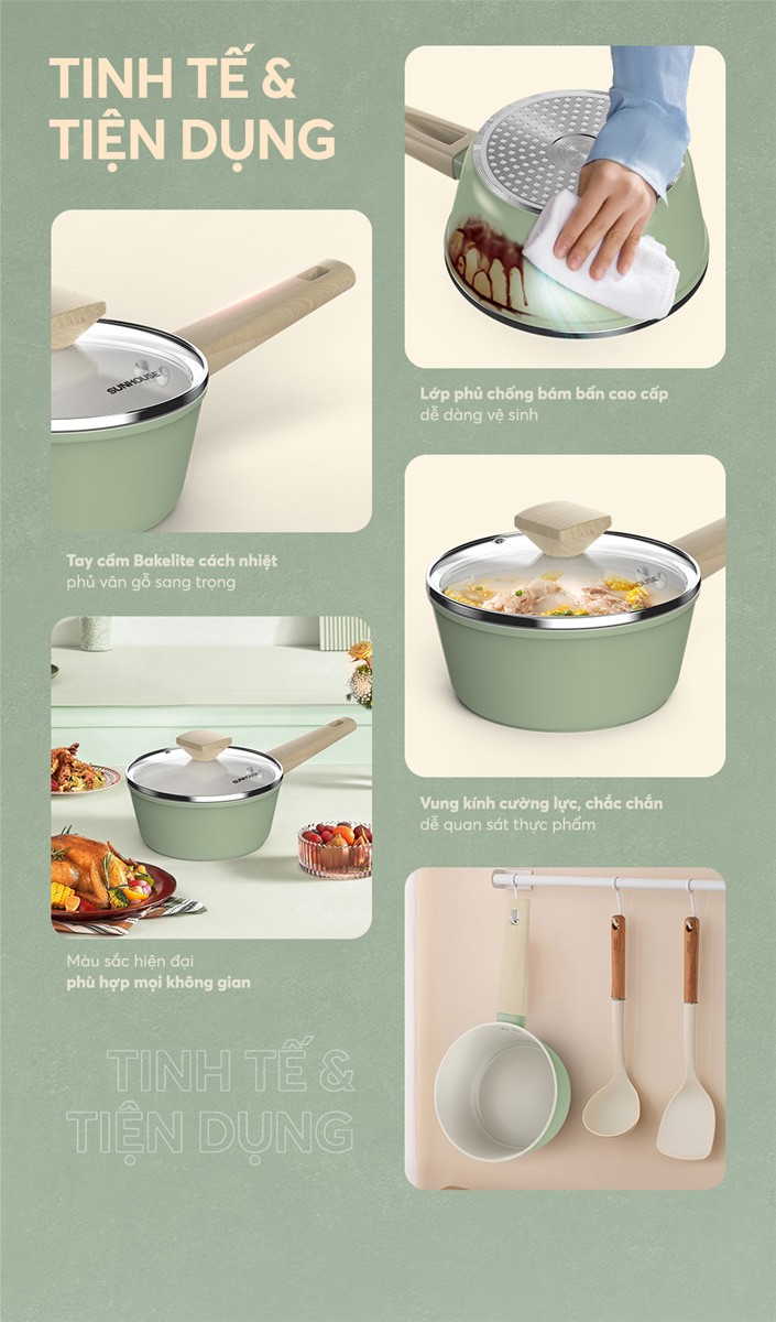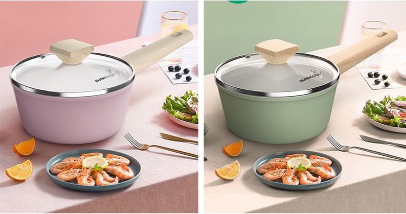 Quánh nhôm chống dính Sunhouse Healthy MP18T với đường kính 18cm, khoác lên màu sắc mới tươi tắn, phù hợp với phong cách sống trẻ trung, hiện đại và tinh tế.