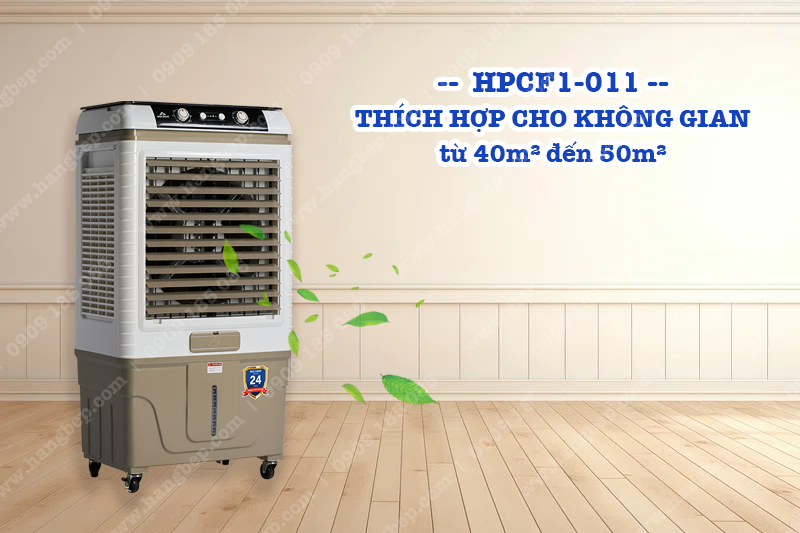 Phù hợp sử dụng nơi có diện tích 40-50m² như phòng khách trong nhà, quán ăn, quán cafe,...Nhờ nguyên lý làm mát hơi nước tự nhiên, HPCF1-011 có thể dễ dàng hạ nhiệt độ không khí, mang lại luồng gió mát lạnh giữa những ngày oi bức.