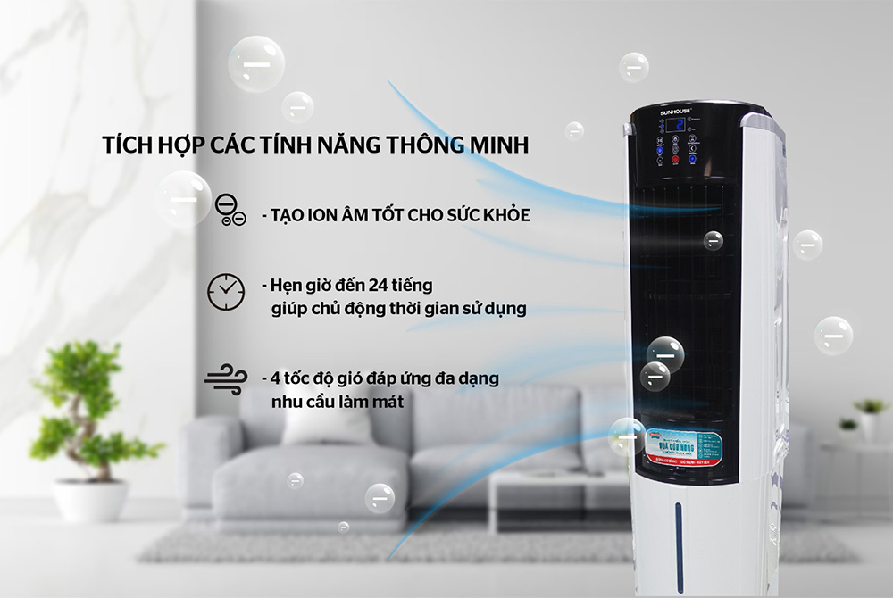 Tích hợp chức năng Tạo ion âm (-), lọc và khử mùi khó chịu, loại bỏ bớt các loại bụi siêu nhỏ và các chất rắn lơ lửng trong không khí, cho cả gia đình một luồng không khí mát sạch.