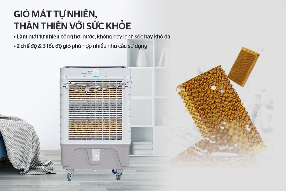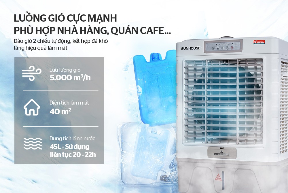 Sử dụng ở không gian mở và lớn nhưng sản phẩm lại không hề tốn quá nhiều chi phí điện năng. Với công suất chỉ bằng 1/10 điều hòa không khí thông thường, sản phẩm còn không gây ra tiếng ồn quá lớn (60-70dB), không ảnh hưởng đến sinh hoạt xung quanh.