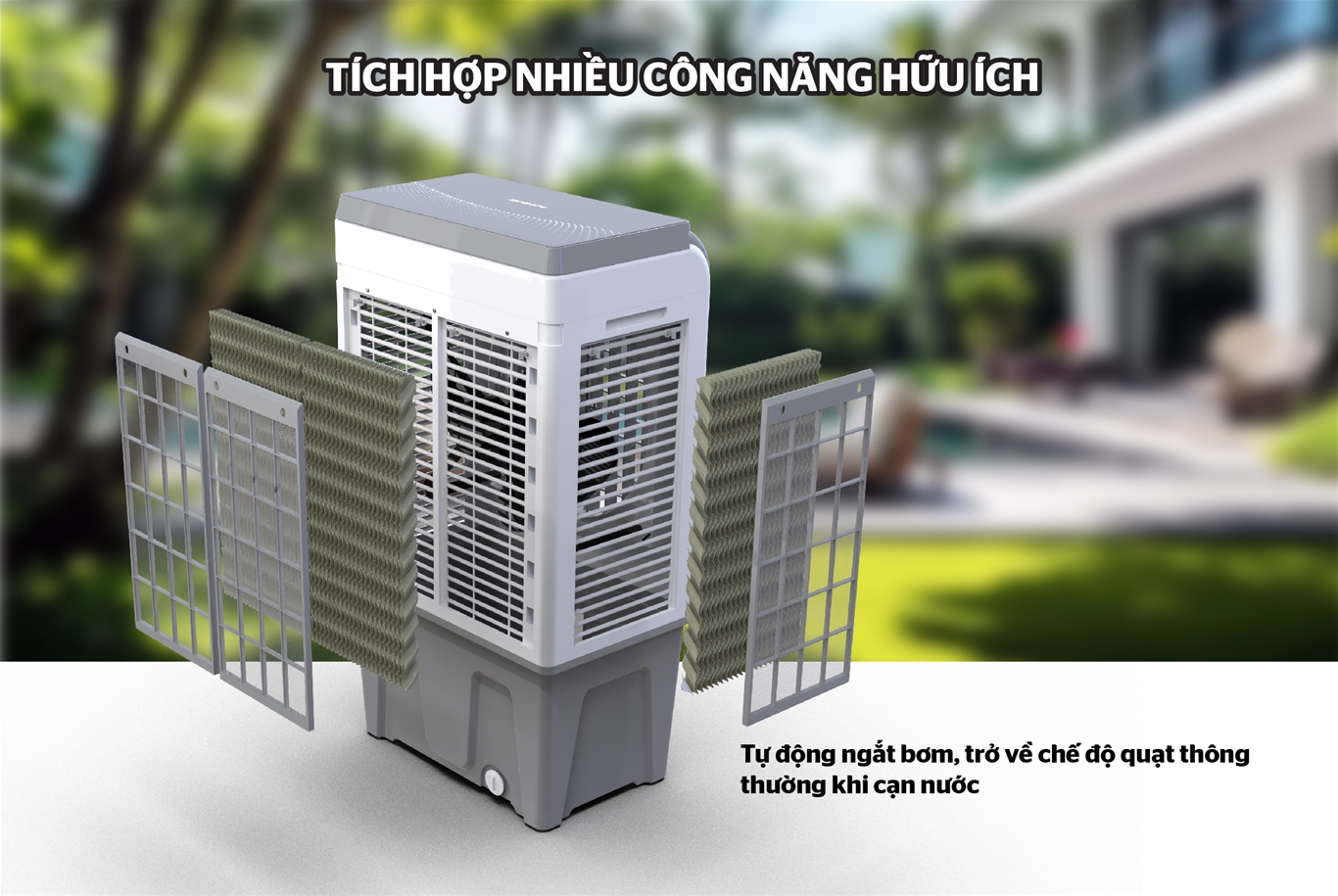 Khi bình cạn nước hoặc khi quá nhiệt bơm máy bơm sẽ tự động ngắt hoạt động để hạn chế bơm khô tăng tuổi thọ sản phẩm, thiết bị trở về chế độ quạt gió thông thường.