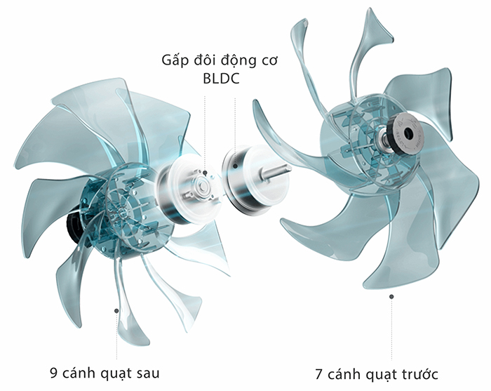 | Số cánh quạt | 7 cánh phía trước 9 cánh phía sau |