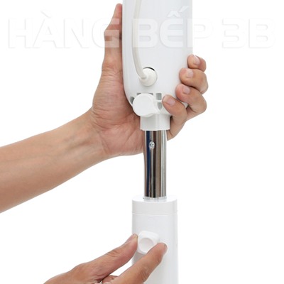 - Quạt vận hành với công suất 50W giúp tạo lực gió mạnh, kết hợp với góc đảo gió 85º sẽ nâng cao khả năng thổi mát. Điều khiển quạt quay chỉ cần ấn nút nhấn trên thân.
