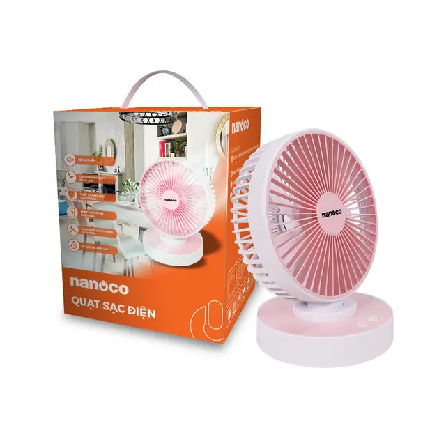 Quạt sạc điện Nanoco NRF6215P thiết kế gọn nhẹ, màu hồng nhẹ nhàng phù hợp cho những bạn thích sự đáng yêu dễ thương. Quạt được làm từ chất liệu nhựa ABS cao cấp, chống sốc, chống va đập. Với thiết kế nhỏ gọn, có thể sử dụng trong phòng ngủ, phòng khách, bàn học, bàn làm việc,...hay bất cứ đâu bạn muốn.
