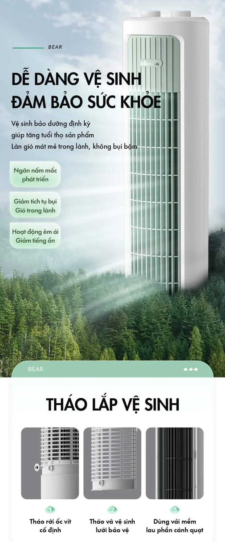 Quạt tháp Bear DFS-D40G1 thiết kế nhỏ gọn, phù hợp với mọi không gian sinh hoạt như phòng ngủ, phòng làm việc, phòng khách,...
