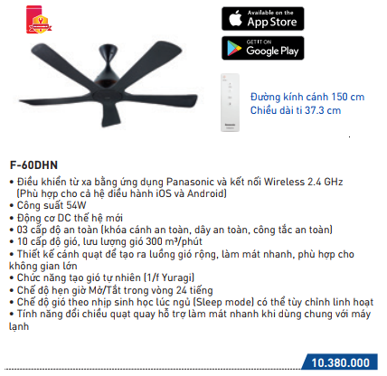 Thông số kỹ thuật Quạt trần Panasonic F-60DHN