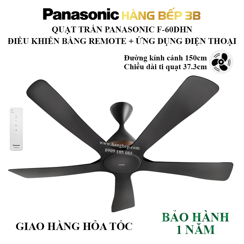 Quạt trần 5 cánh Panasonic F-60DHN sở hữu thiết kế tinh tế và hiện đại. Ngoài những tính năng đặc trưng của 1 chiếc quạt trần, thì F-60DHN còn có thêm chức năng hẹn giờ, chế độ gió ngủ và nhiều tính năng an toàn sử dụng khác. Cùng Hàng Bếp 3B điểm qua những đặc tính nổi bật của sản phẩm này nhé !