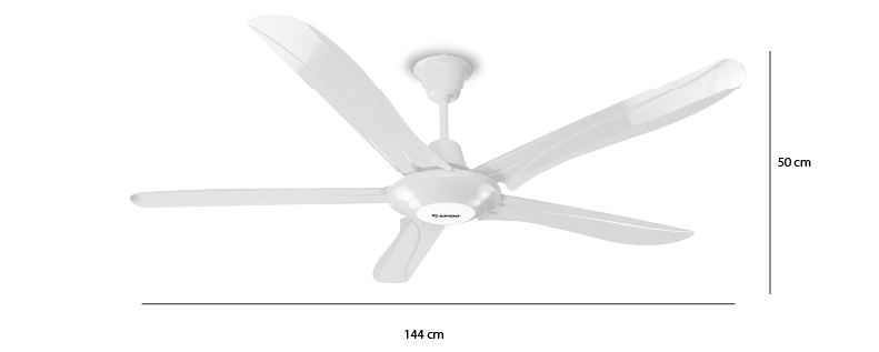 Sở hữu 5 cánh quạt có đường kính 144cm giúp tạo ra làn gió mát rộng khắp cả không gian, giúp xua tan cái nóng oi bức trong những ngày nắng nóng.