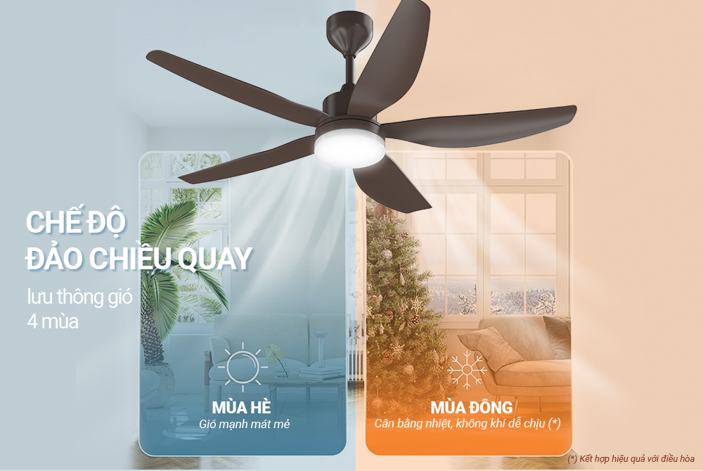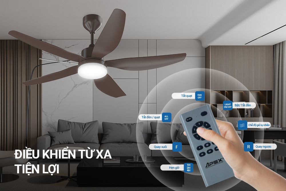 Vượt trội hơn quạt trần thông thường, quạt trần Sunhouse Apex trang bị thêm tính năng đảo chiều quay kết hợp với công suất 57W giúp làm mát không gian phòng nhanh chóng, động cơ hoạt động êm ái, hạn chế tiếng ồn, không ảnh hưởng đến hoạt động sinh hoạt của người dùng.