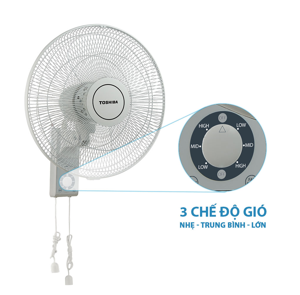 Quạt treo tường Toshiba F-AWA50VN(H) là dòng quạt cơ bản của hãng Toshiba - Nhật. Sản phẩm có 3 cánh với đường kính cánh lớn 40cm, kết hợp công suất 55W tạo lưu lượng gió mạnh và xa