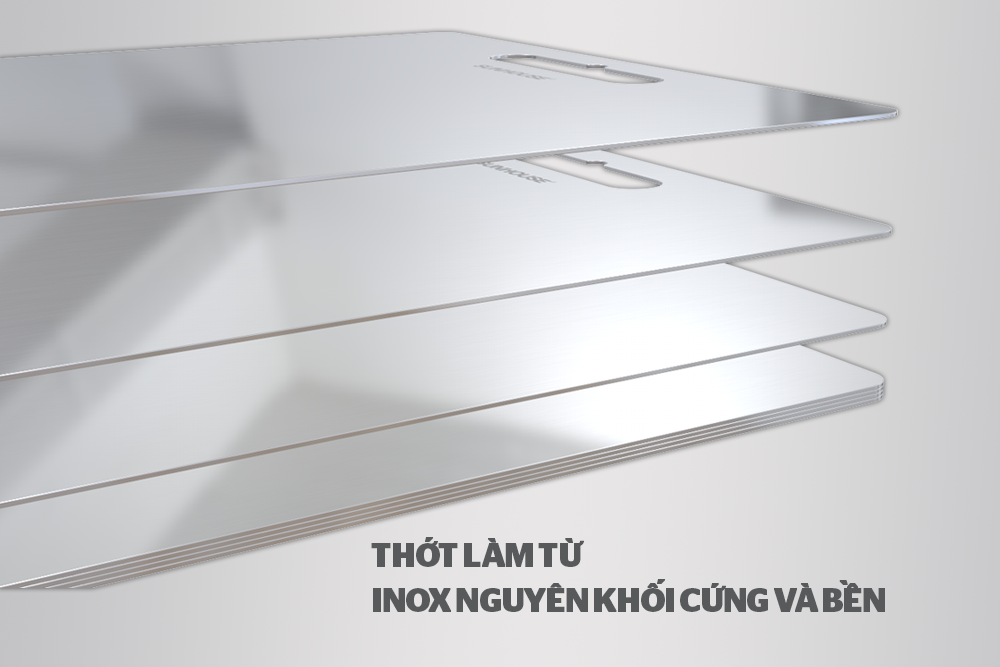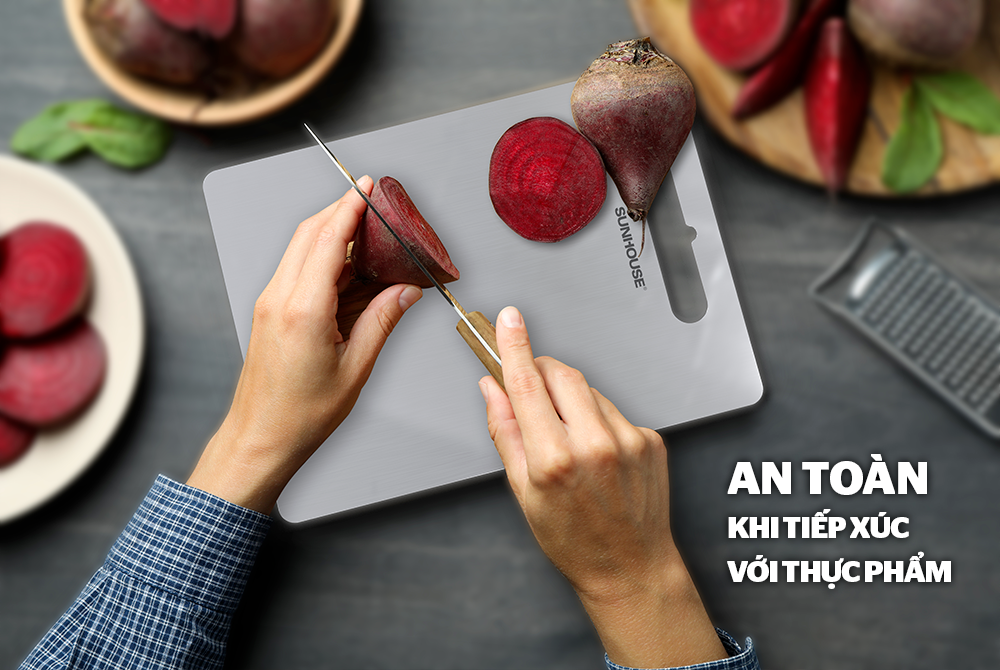 Thớt inox Sunhouse KS-CH3125S được chế tạo từ inox 304 cao cấp, chống thôi nhiễm kim loại giúp đạt tối đa an toàn khi sử dụng lâu dài. Do đó, Bạn có thể yên tâm thái, cắt chế biến thức ăn cho cả gia đình.