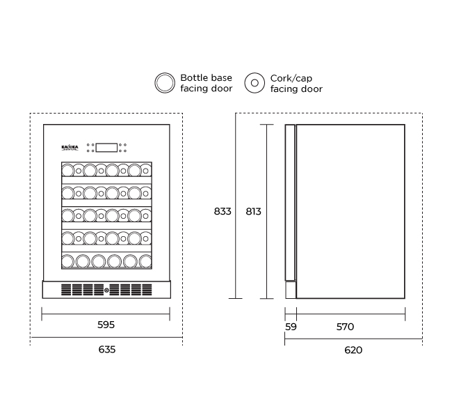 Sức chứa | 54 chai (dựa trên chai Bordeaunx chuẩn 0.75 lít) |