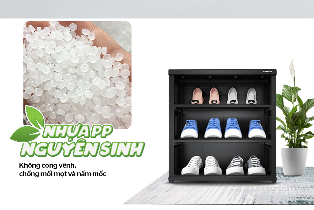 Tủ được làm từ chất liệu nhựa PP nguyên sinh. Chất liệu này an toàn khi tiếp xúc với quần áo, đồ dùng.