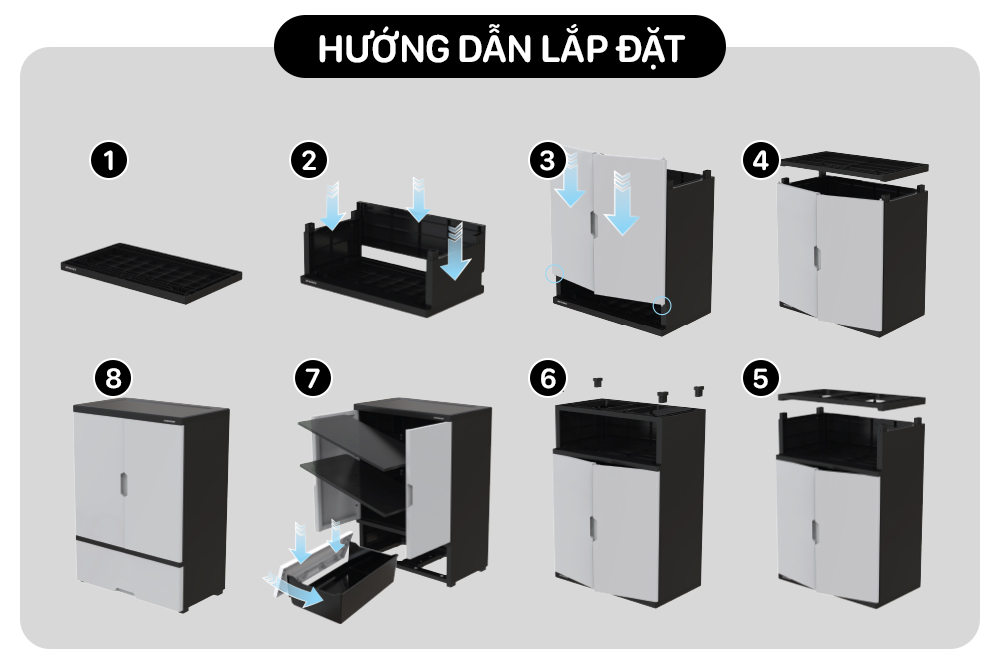 Thiết kế với các khớp nối thông minh, dễ dàng lắp ráp, tháo rời và xếp gọn. Link hướng dẫn lắp ráp (click tại đây).
