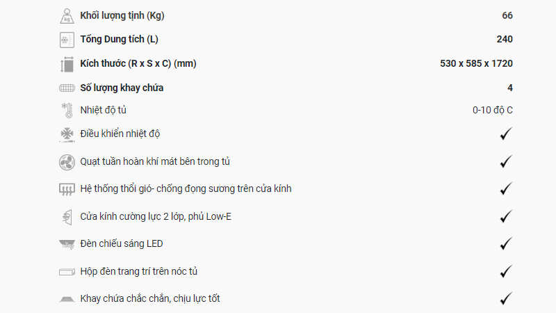 Kích thước (R x S x C) (mm): 530 x 585 x 1720