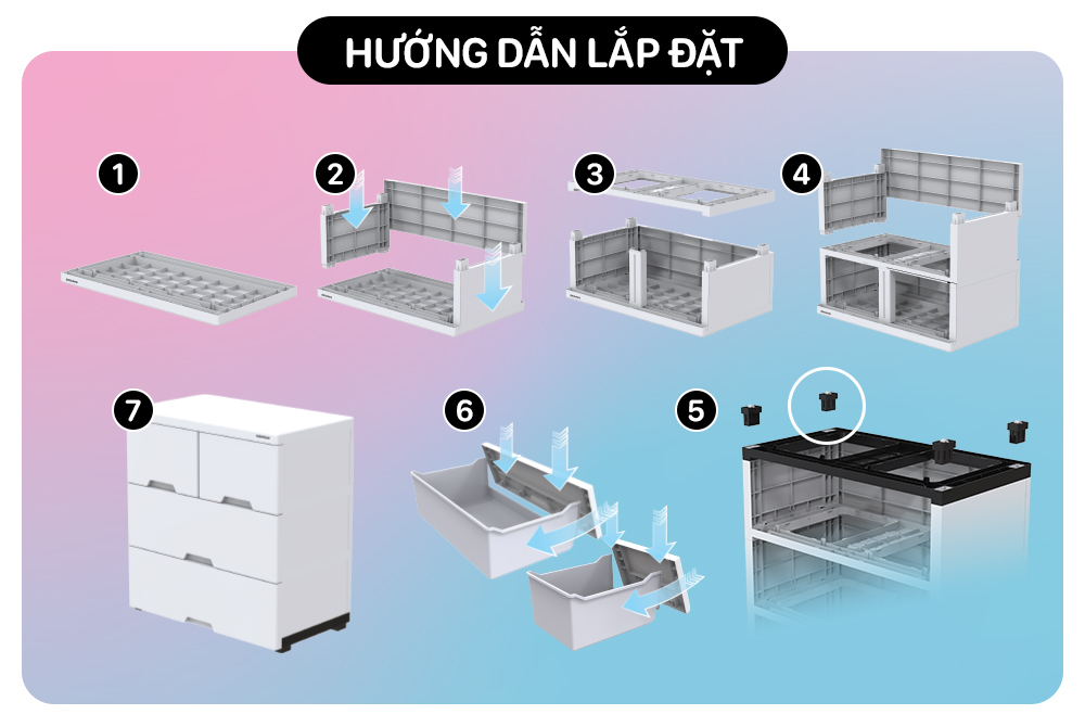Tủ nhựa cứng cáp không cong vênh với các khớp ráp chắc chắn. Được thiết kế màu sắc và kiểu dáng đáng yêu, phù hợp với bé trai và bé gái.