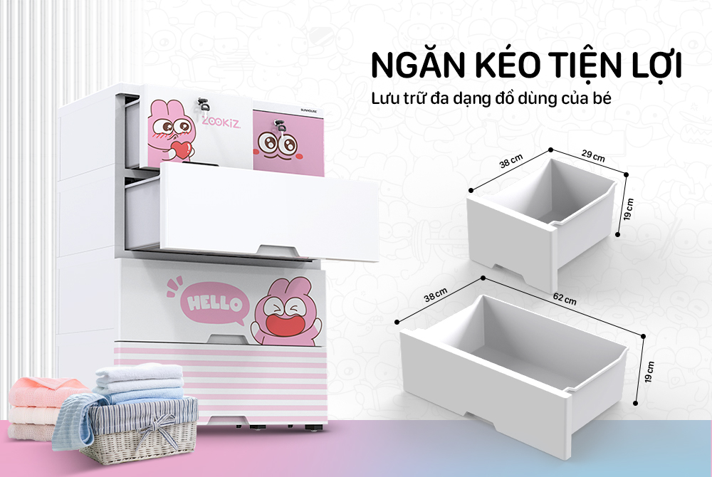 Tủ nhựa cứng cáp không cong vênh với các khớp ráp chắc chắn. Được thiết kế màu sắc và kiểu dáng đáng yêu, phù hợp với bé trai và bé gái.
