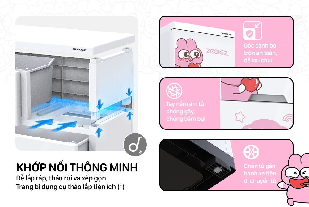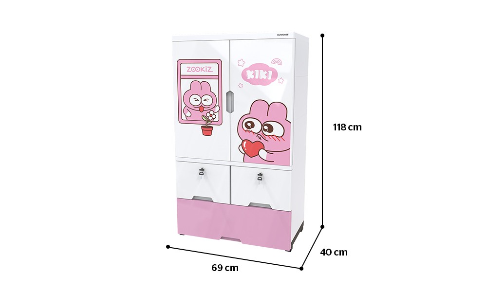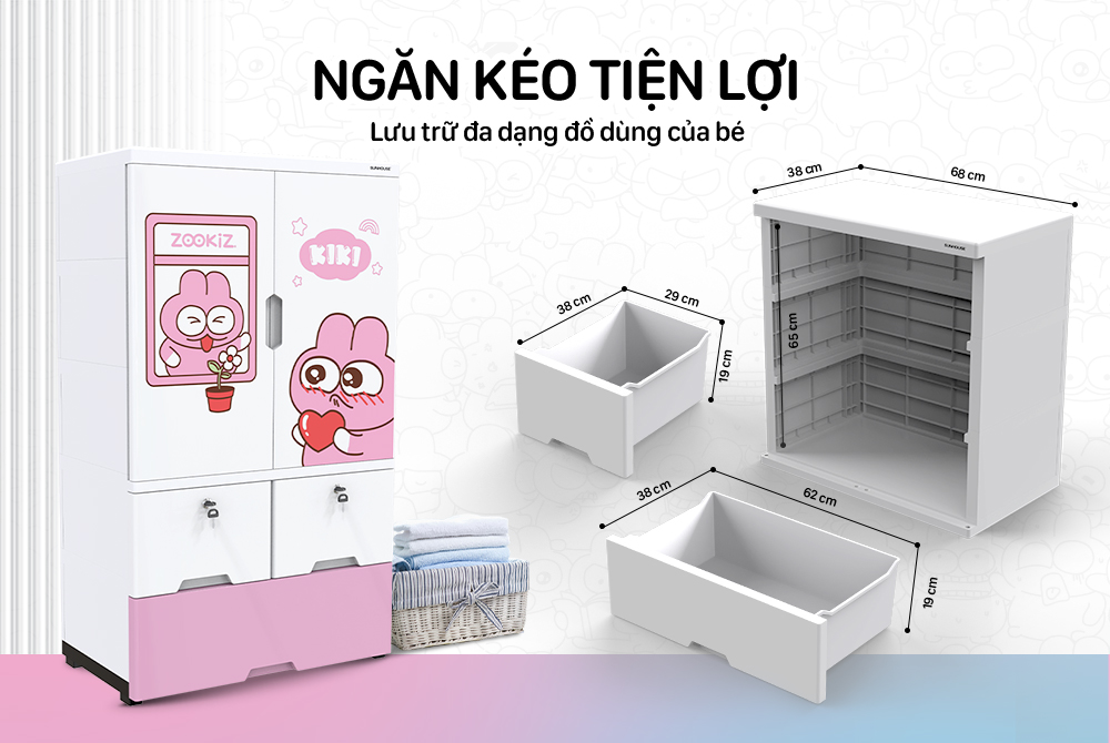 Tủ nhựa cứng cáp không cong vênh với các khớp ráp chắc chắn. Được thiết kế màu sắc và kiểu dáng đáng yêu, phù hợp với bé trai và bé gái.